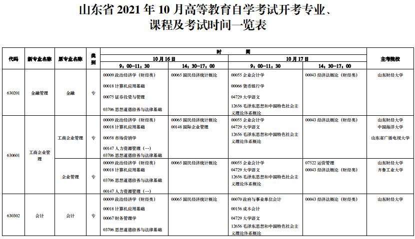 點擊查看完整版>>>山東省2021年10月高等教育自學考試開考專業(yè)、課程及考試時間一覽表
