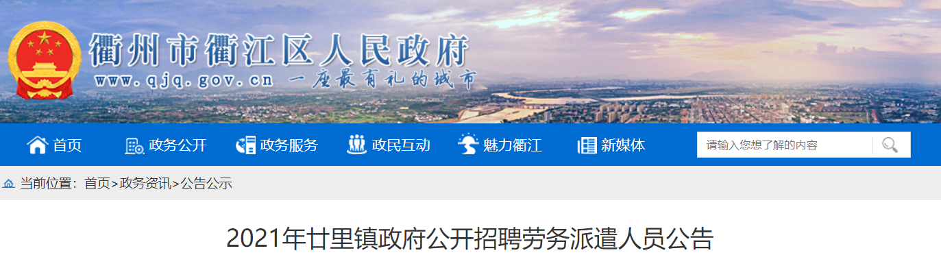2021年12月7日起,通過(guò)衢江區(qū)政府網(wǎng)(http://www.qjq.gov.cn/col/col1389659/index.html)“公告公示”欄向社會(huì)發(fā)布招聘信息。搜索并關(guān)注“廿里在線”微信公眾號(hào),在“往期文章”里亦可查看招聘信息。