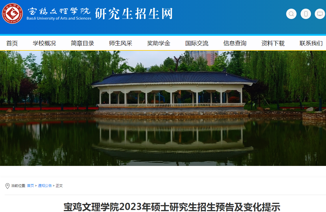 考研頻道從寶雞文理學(xué)院研究生招生網(wǎng)了解到,寶雞文理學(xué)院2023年碩士研究生招生預(yù)告及變化提示已發(fā)布,詳情如下: