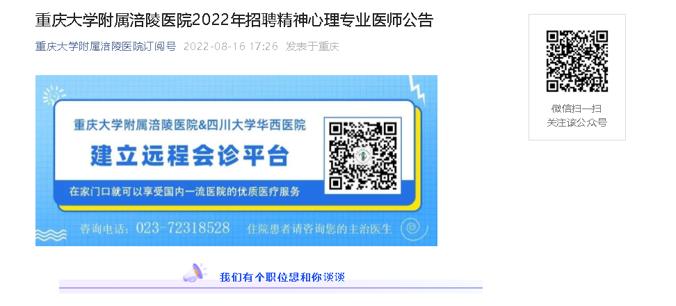 2、聯(lián)系科室:重慶大學(xué)附屬涪陵醫(yī)院人力資源科