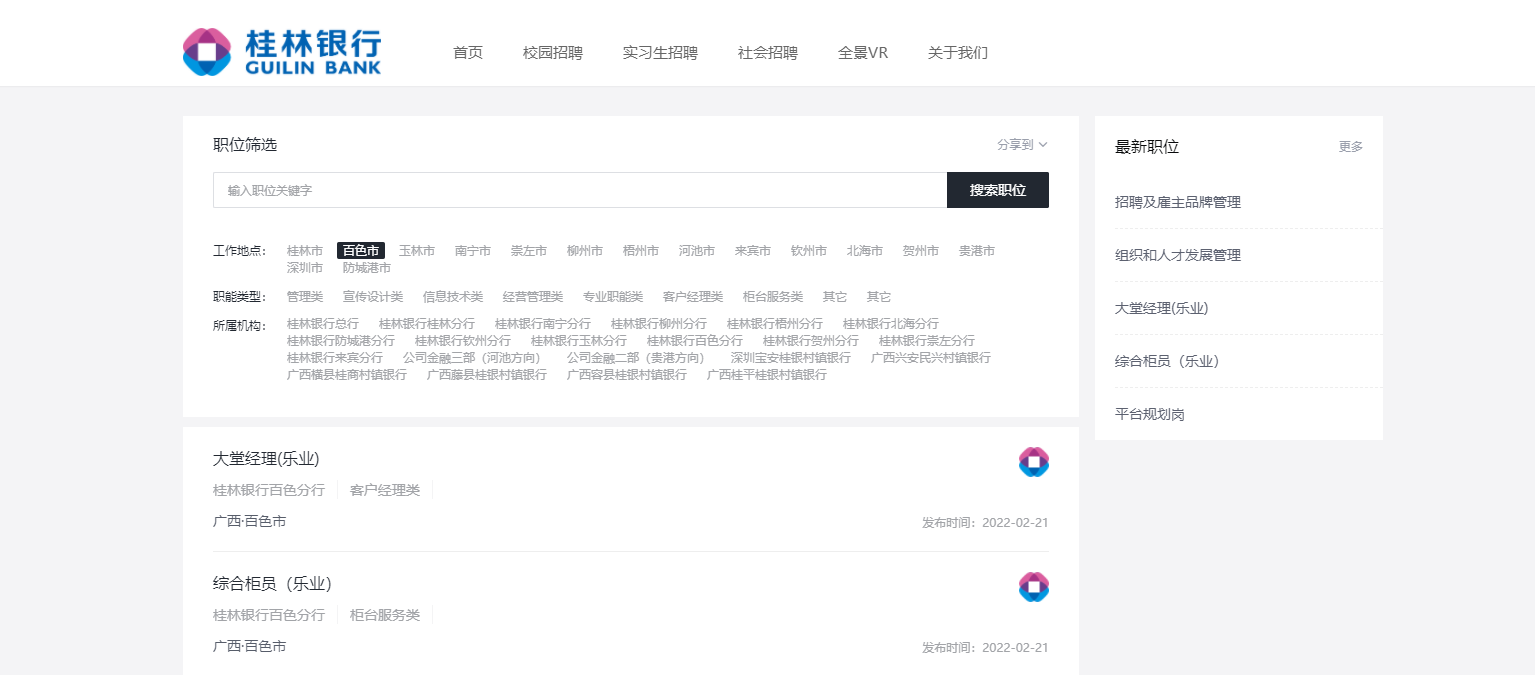 2022桂林銀行廣西百色分行社會(huì)招聘若干人,報(bào)名申請(qǐng)入口已開(kāi)通,現(xiàn)將招聘詳情發(fā)布如下: