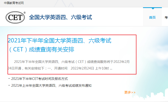 從中國(guó)教育考試網(wǎng)發(fā)布的《2021下半年全國(guó)大學(xué)英語(yǔ)四六級(jí)考試成績(jī)查詢有關(guān)安排》得知,2021下半年上海英語(yǔ)四級(jí)成績(jī)查詢時(shí)間、方式及入口已公布,2022年2月24日可查分,具體詳情如下: