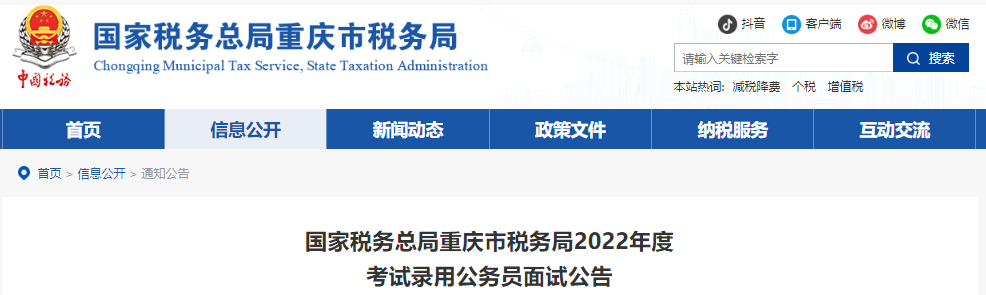 根據(jù)公務(wù)員法和公務(wù)員錄用有關(guān)規(guī)定,現(xiàn)就2022年度國家稅務(wù)總局重慶市稅務(wù)局考試錄用公務(wù)員面試有關(guān)事宜通知如下: