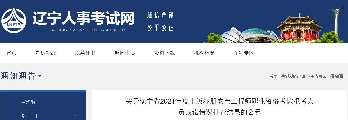 根據(jù)《關(guān)于做好2021年度中級(jí)注冊(cè)安全工程師職業(yè)資格考試考務(wù)工作的通知》(遼人考函〔2021〕27號(hào))要求,各市人事考試部門對(duì)已簽署《資格考試報(bào)名證明事項(xiàng)告知承諾書》的報(bào)考人員進(jìn)行抽查。