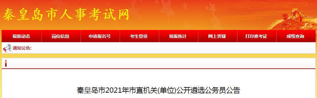 為滿足市直單位的用人需求,按照《公務(wù)員法》《河北省公務(wù)員公開遴選暫行辦法》等有關(guān)規(guī)定,經(jīng)研究,決定開展秦皇島市2021年市直機(jī)關(guān)(含參照公務(wù)員法管理事業(yè)單位)公開遴選公務(wù)員工作?,F(xiàn)將有關(guān)事項(xiàng)公告如下: