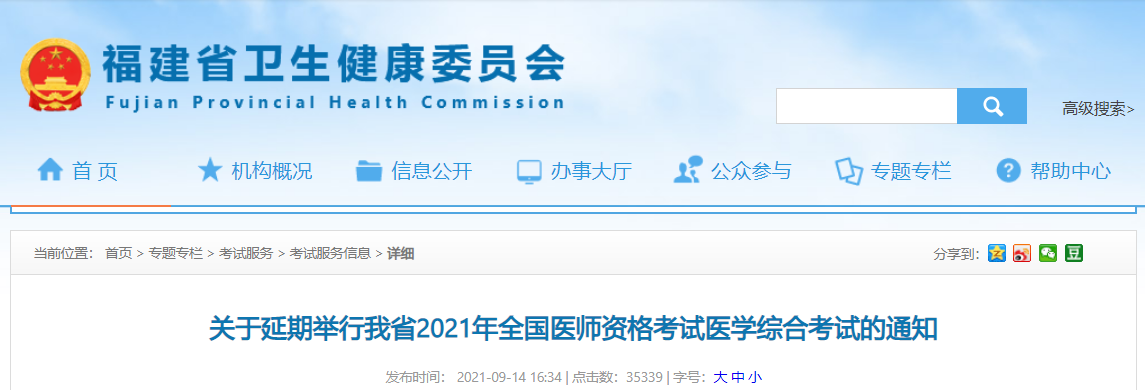 根據(jù)當(dāng)前我省疫情防控的形勢(shì),為減少人員聚集,集中力量做好我省疫情防控工作,經(jīng)國家衛(wèi)生健康委醫(yī)師資格考試委員會(huì)辦公室批準(zhǔn)同意,原定于9月18日至20日舉行的2021年全國醫(yī)師資格考試福建考區(qū)醫(yī)學(xué)綜合考試延期舉行。我辦將根據(jù)疫情防控形勢(shì)研判和國家部署,擇期開考。具體考試時(shí)間另行通知。