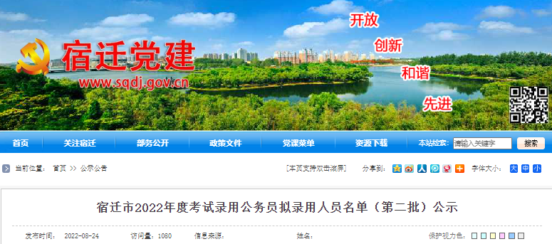 宿遷市2022年度考試錄用公務(wù)員擬錄用人員名單(第二批)公示