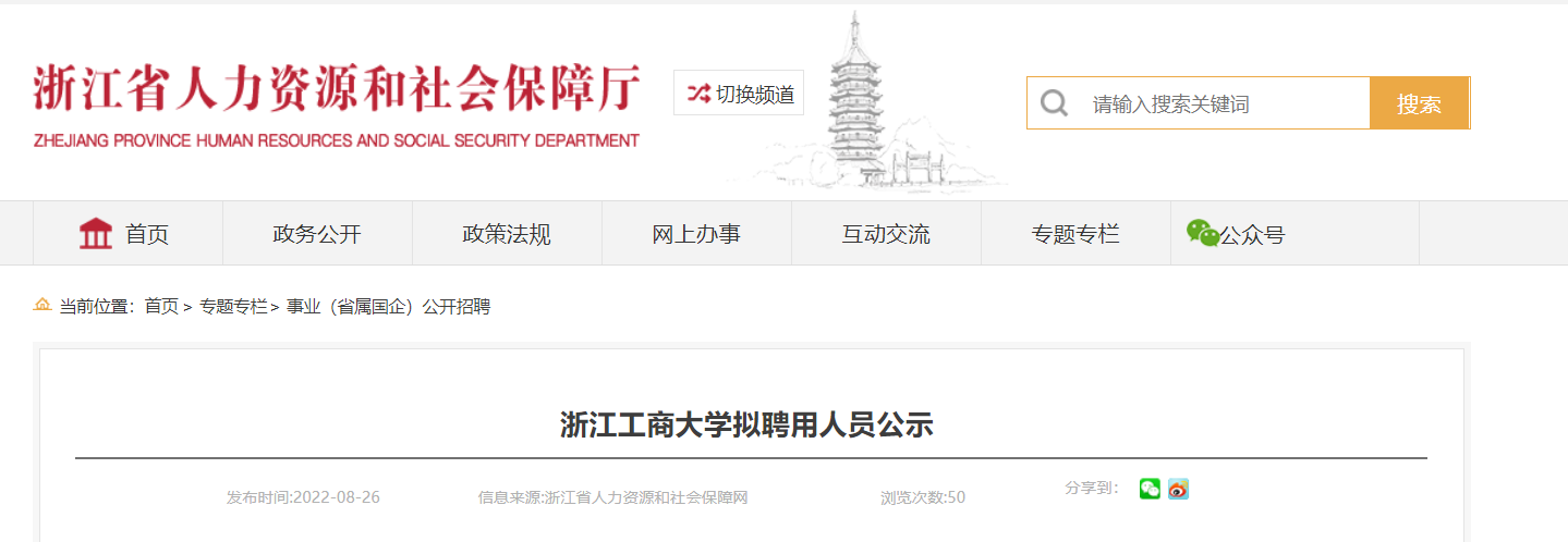 2022浙江工商大學(xué)擬聘用人員公示已發(fā)布,公示時間:從2022年8月26日至2022年9月5日,現(xiàn)將原文發(fā)布如下:
