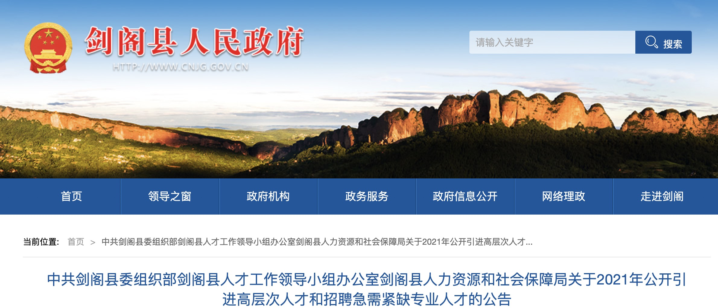 1.劍閣縣2021年公開引進高層次人才崗位條件表
