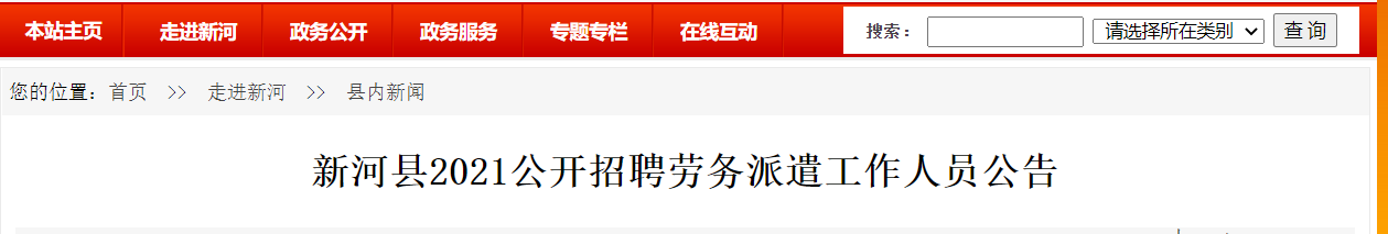 2021年12月11日至17日通過新河縣人民政府網(wǎng)、“新河人社”微信公眾號、公開招聘報名系統(tǒng)http://154.8.149.122:7532/index/Index/view.html?project_id=41發(fā)布招聘信息。