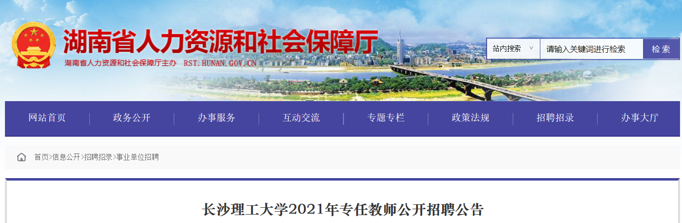 招聘信息通過湖南省人力資源和社會(huì)保障廳(http://rst.hunan.gov.cn/)、長沙理工大學(xué)網(wǎng)站(https://www.csust.edu.cn/)、長沙理工大學(xué)人事處網(wǎng)站面向社會(huì)公開發(fā)布。