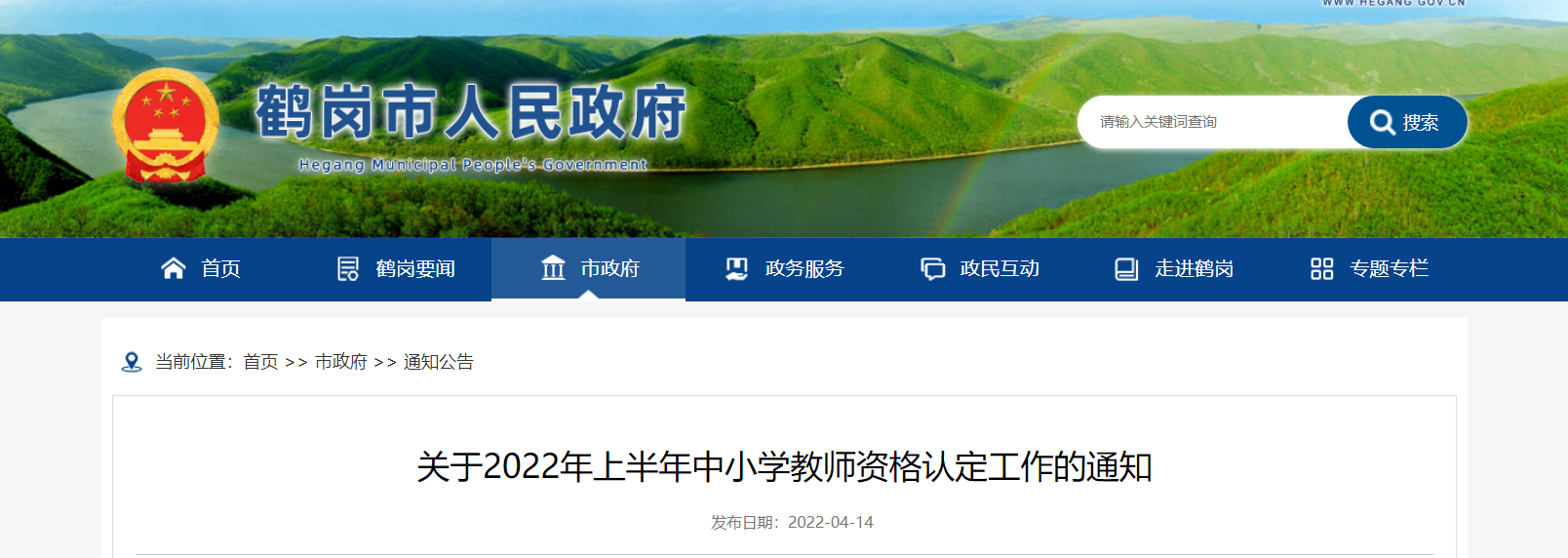 從鶴崗市人民政府獲悉,2022年上半年黑龍江鶴崗中小學(xué)教師資格認(rèn)定工作的通知已公布,請(qǐng)相關(guān)人員仔細(xì)閱讀,具體詳情如下:
