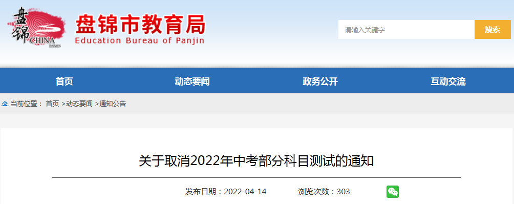 從盤錦市教育局了解到,關于取消遼寧盤錦2022年中考部分科目測試的通知已發(fā)布,詳細內(nèi)容如下: