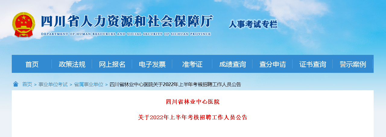 面試資格審查的具體時間和地點將提前在四川省人力資源和社會保障廳“人事考試”專欄和四川省林業(yè)中心醫(yī)院上公布,不再另行通知,請報考者注意查閱相關(guān)信息。