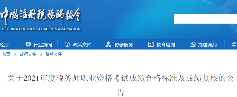 根據(jù)人力資源和社會(huì)保障部專業(yè)技術(shù)人員管理司《關(guān)于2021年度稅務(wù)師職業(yè)資格考試合格標(biāo)準(zhǔn)意見的函》,現(xiàn)將2021年度稅務(wù)師職業(yè)資格考試成績合格標(biāo)準(zhǔn)及成績復(fù)核事項(xiàng)公告如下:
