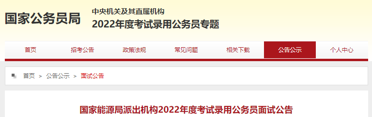 2022年國家公務員考試已進入面試階段,為了讓考生及時獲悉相關(guān)面試事宜,今天為您精心整理了2022年國家能源局派出機構(gòu)考試錄用國家公務員面試公告,供各位考生的查閱,更多國家公務員考試方面的資訊,請關(guān)注的更新。