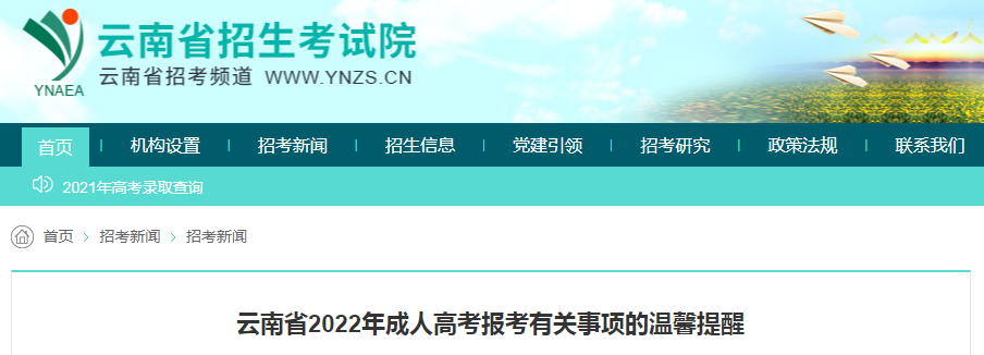 從云南省招生考試院了解到,云南省2022年成人高考報考有關(guān)事項的溫馨提醒已發(fā)布,詳細內(nèi)容如下: