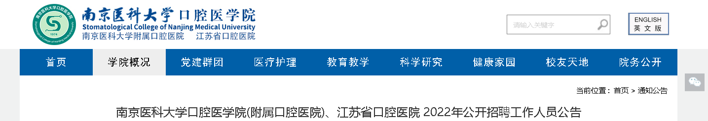 2022江蘇南京醫(yī)科大學口腔醫(yī)學院(附屬口腔醫(yī)院)、江蘇省口腔醫(yī)院招聘,報名時間:詳細請見公告內(nèi),現(xiàn)將招聘公告原文發(fā)布如下: