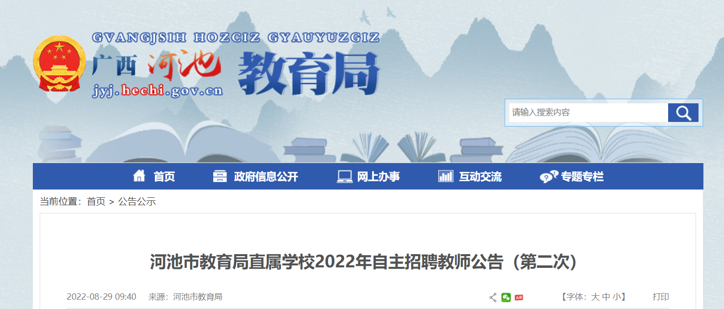 原文標(biāo)題:河池市教育局直屬學(xué)校2022年自主招聘教師公告(第二次)