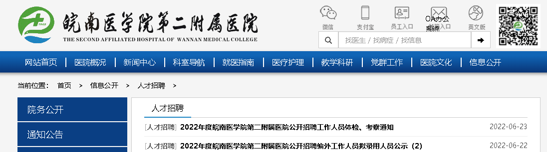 2022安徽皖南醫(yī)學院第二附屬醫(yī)院招聘編外人員擬錄用人員公示(2)已出,公示期:2022年6月22日至6月28日,現(xiàn)將招聘公告原文發(fā)布如下: