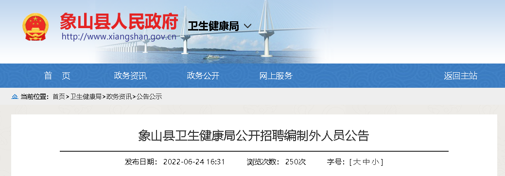 2022年浙江寧波象山縣衛(wèi)生健康局招聘編外人員29人,報(bào)名時(shí)間:2022年6月30日——7月1日(上午8:30-11:00,下午14:00-17:00),現(xiàn)將招聘公告原文發(fā)布如下: