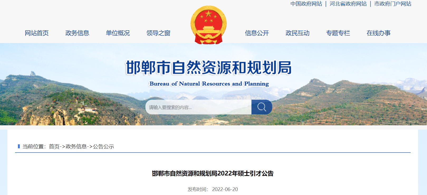 2022河北省邯鄲市自然資源和規(guī)劃局碩士引才公告已發(fā)布。報名即日起始,2022年7月15日截止?,F(xiàn)將招聘公告原文發(fā)布如下: