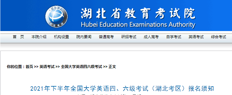 從湖北省教育考試院發(fā)布的《湖北2021年下半年全國(guó)大學(xué)英語(yǔ)四、六級(jí)考試報(bào)名須知》得知,2021下半年湖北英語(yǔ)六級(jí)報(bào)名時(shí)間、條件、費(fèi)用及入口已公布,9月24日-10月12日進(jìn)行報(bào)名,具體詳情如下: