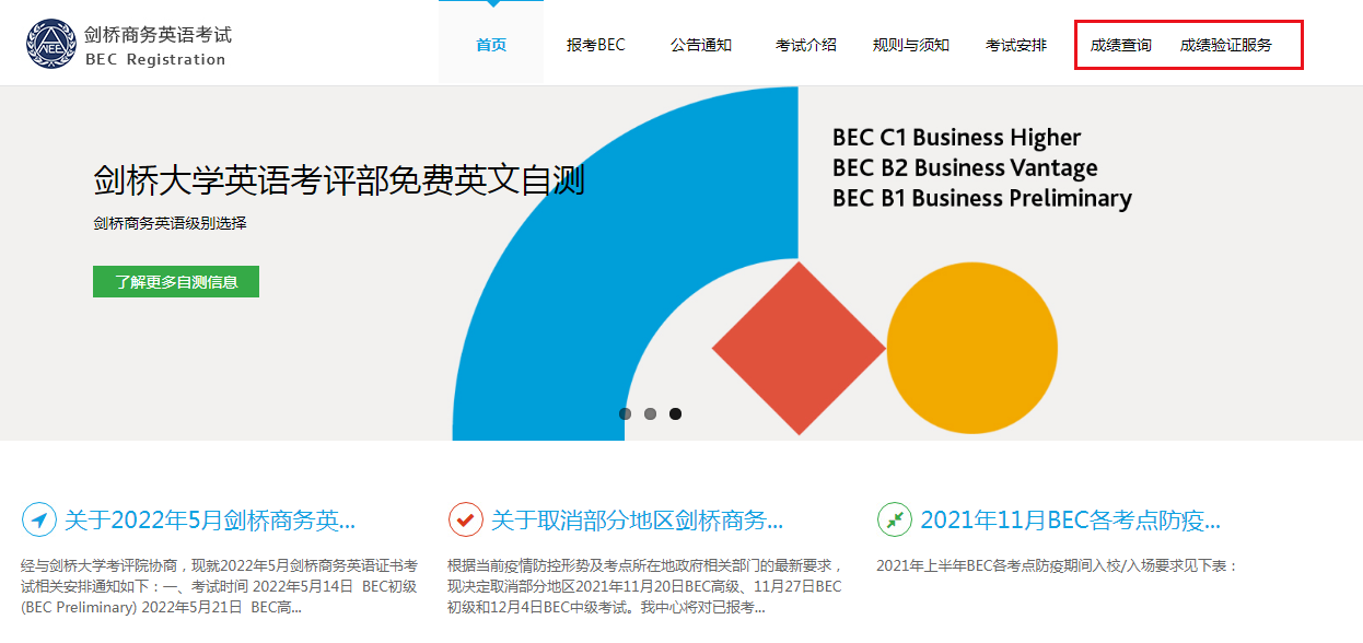 從BEC-中國教育考試網(wǎng)發(fā)布的《2022年5月劍橋商務英語證書(BEC)考試相關安排的通知》得知,2022年5月黑龍江初級商務英語成績查詢時間及入口已公布,7月18日可查分,具體詳情如下:
