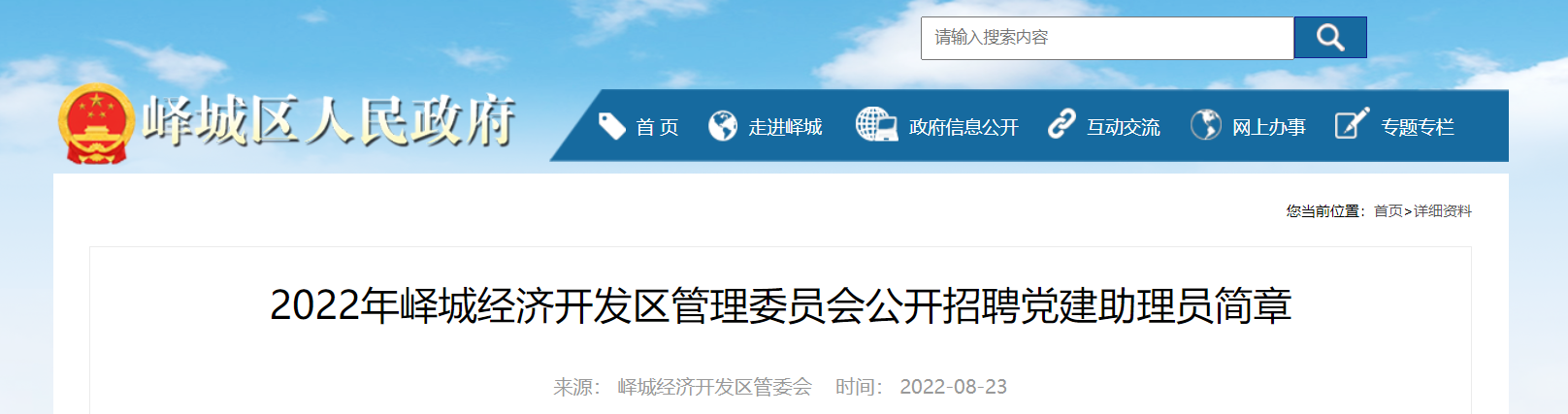 2022山東省棗莊市嶧城經(jīng)濟(jì)開(kāi)發(fā)區(qū)管理委員會(huì)招聘黨建助理員公告已發(fā)布。報(bào)名時(shí)間:2022年8月25日9:00—8月31日16:00?,F(xiàn)將招聘公告原文發(fā)布如下: