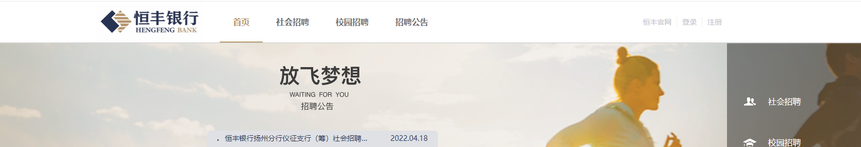 2022恒豐銀行江蘇揚(yáng)州分行儀征支行(籌)社會(huì)招聘若干人,報(bào)名時(shí)間:2022年6月30日截止,現(xiàn)將招聘公告發(fā)布如下: