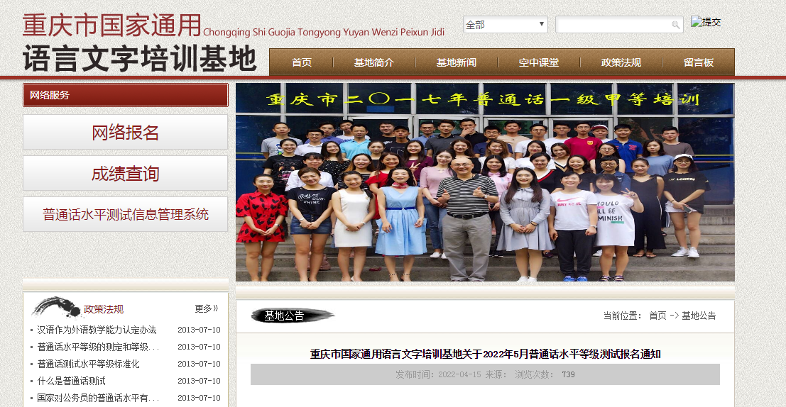 重慶市國家通用語言文字培訓(xùn)基地2022年5月普通話水平等級測試及培訓(xùn)報名相關(guān)事項如下: