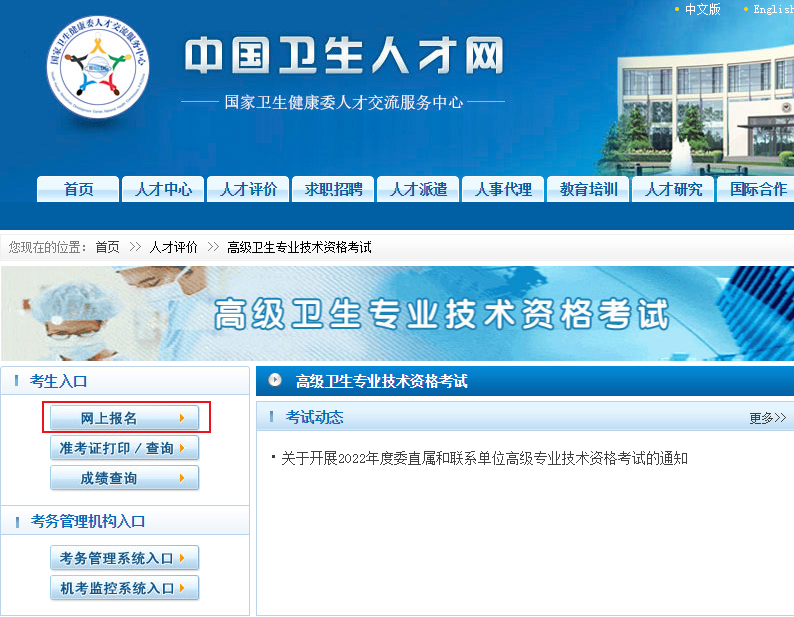 點擊進(jìn)入>>>2022年黑龍江衛(wèi)生系列高級職稱專業(yè)技術(shù)資格考試報名入口