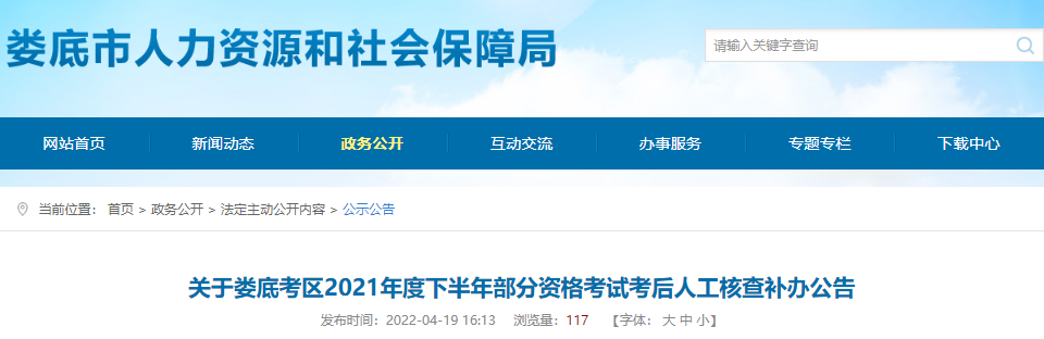 根據(jù)湖南人事考試網(wǎng)“資格審查”公告的精神,為做好婁底考區(qū)2021年度下半年部分資格考試考后人工核查補(bǔ)辦工作,現(xiàn)將有關(guān)事項公告如下: