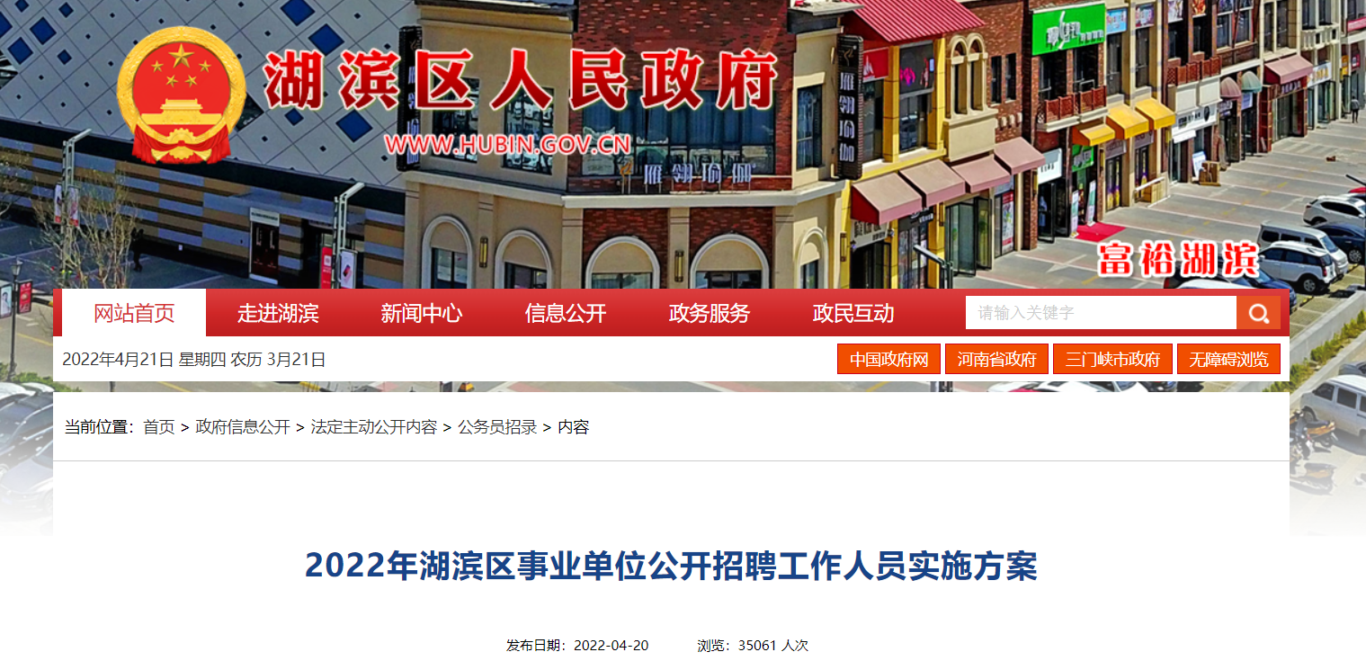 2022河南省三門峽市湖濱區(qū)事業(yè)單位招聘公告【36人】已發(fā)布。本次公開招聘采取網(wǎng)上報名方式,報考者按照以下要求報名。為您整理了招聘條件和報名流程,供您參考。