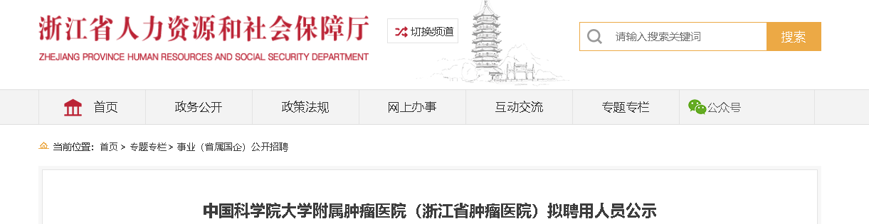 中國(guó)科學(xué)院大學(xué)附屬腫瘤醫(yī)院(浙江省腫瘤醫(yī)院)擬聘用人員公示