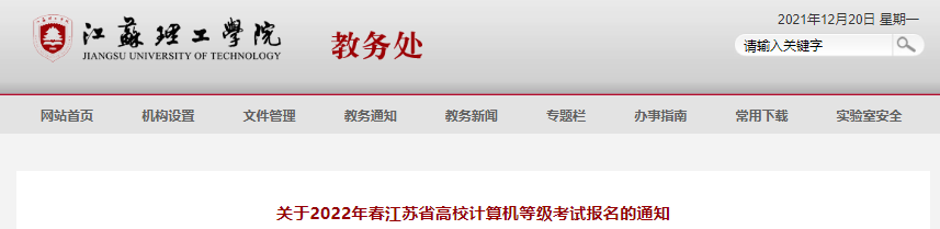 根據(jù)江蘇省高校計(jì)算機(jī)等級(jí)考試中心報(bào)名通知精神,現(xiàn)將2022年春季我校江蘇省高校計(jì)算機(jī)等級(jí)考試報(bào)名工作有關(guān)事宜通知如下: