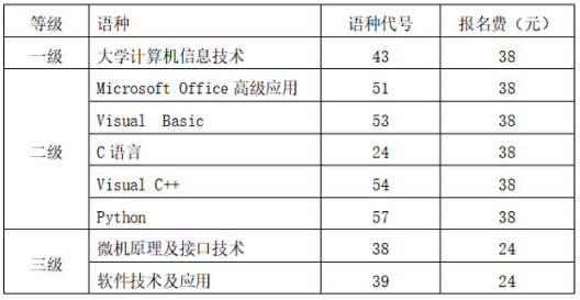 二、考試級(jí)別、語(yǔ)種、收費(fèi)標(biāo)準(zhǔn)