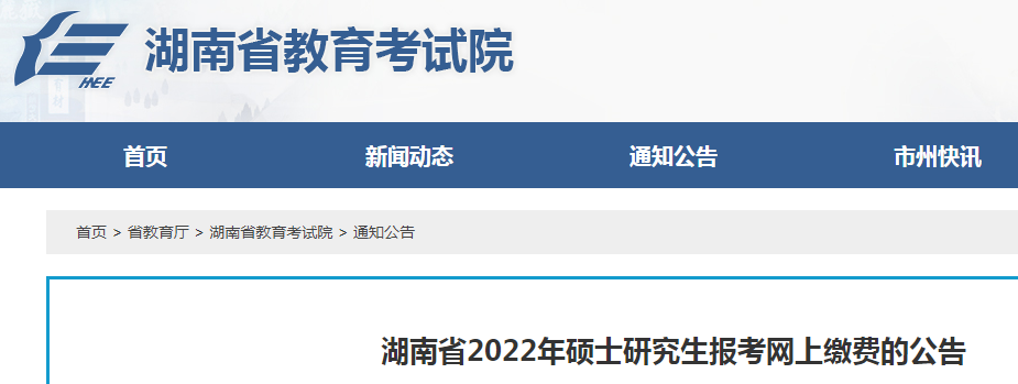 從湖南省教育考試院了解到,2022年湖南碩士研究生報(bào)考網(wǎng)上繳費(fèi)的公告已發(fā)布,為方便考生了解情況,現(xiàn)將有關(guān)事宜通知如下: