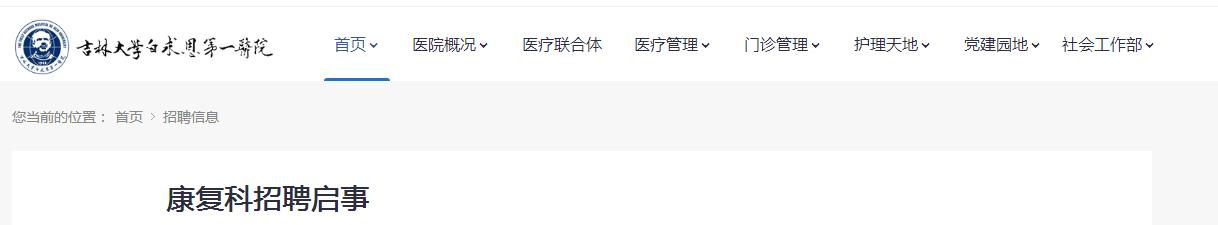2021吉林大學(xué)白求恩第一醫(yī)院康復(fù)科招聘工作人員,報(bào)名時(shí)間:2021年9月28日下午4:00截止,現(xiàn)將招聘啟事原文發(fā)布如下: