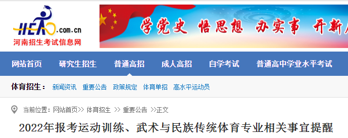 【 #體育特長生# #河南省2022年報(bào)考運(yùn)動(dòng)訓(xùn)練、武術(shù)與民族傳統(tǒng)體育專業(yè)相關(guān)事宜提醒#】從河南招生考試信息網(wǎng)了解到,河南省2022年報(bào)考運(yùn)動(dòng)訓(xùn)練、武術(shù)與民族傳統(tǒng)體育專業(yè)相關(guān)事宜提醒,具體如下: