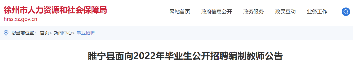 2022年江蘇徐州睢寧縣面對畢業(yè)生招聘編制教師72名,報名時間:12月28日上午8:30-12:00,下午2:00-5:30,現(xiàn)將招聘公告原文發(fā)布如下: