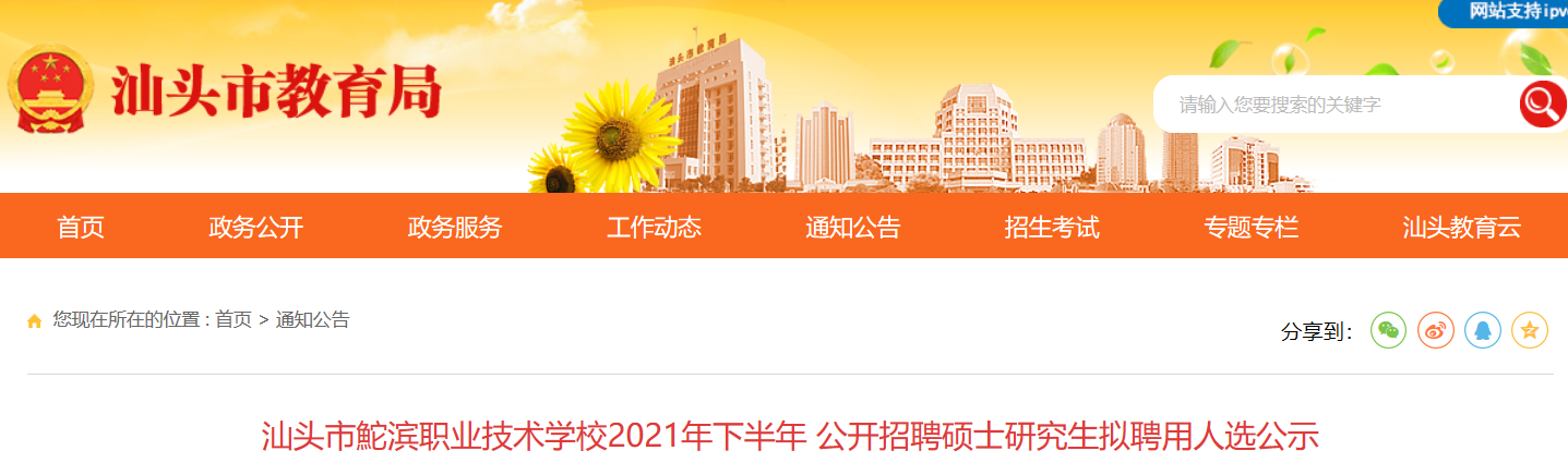 汕頭市鮀濱職業(yè)技術(shù)學校2021年下半年公開招聘碩士研究生擬聘用人選名單