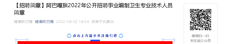 (四)簡(jiǎn)章未盡事宜及有關(guān)信息,將在“阿巴嘎旗人力資源和社會(huì)保障局”微信公眾號(hào)、“健康阿巴嘎”微信公眾號(hào)上及時(shí)發(fā)布,請(qǐng)予關(guān)注。