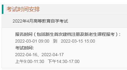 重慶2022年4月自學(xué)考試時間:2022-04-16、2022-04-17;上午9:00-11:30;下午14:30-17:00。