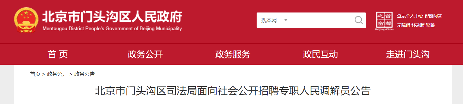 2022北京市門頭溝區(qū)司法局面向社會公開招聘專職人民調(diào)解員公告已發(fā)布。為加強門頭溝區(qū)人民調(diào)解工作,提高人民調(diào)解員隊伍建設(shè)規(guī)范化、職業(yè)化和法治化水平,門頭溝區(qū)司法局決定面向社會公開招聘門頭溝區(qū)專職人民調(diào)解員,現(xiàn)公告如下。為您整理了以下內(nèi)容,供您參考。