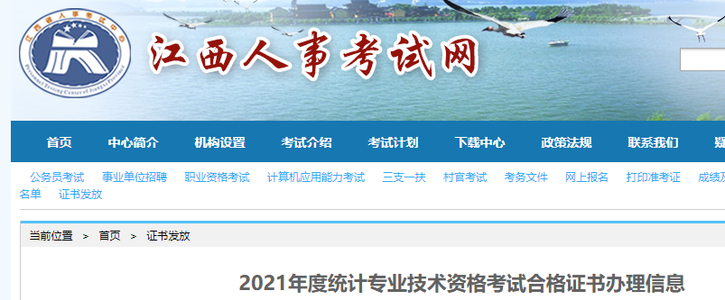 小編根據(jù)江西省人事考試中心發(fā)布”2021年度統(tǒng)計(jì)專業(yè)技術(shù)資格考試合格證書辦理信息