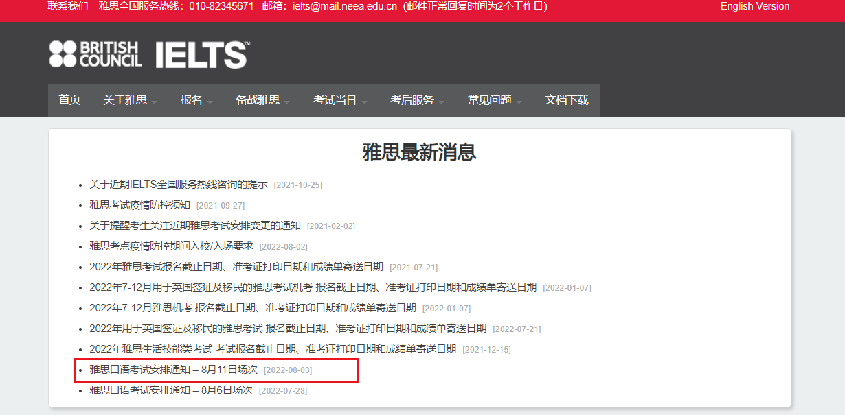 從中國教育考試網(wǎng)獲悉,雅思口語考試安排通知-2022年8月11日場次已公布,請相關(guān)人員仔細(xì)閱讀,具體詳情如下: