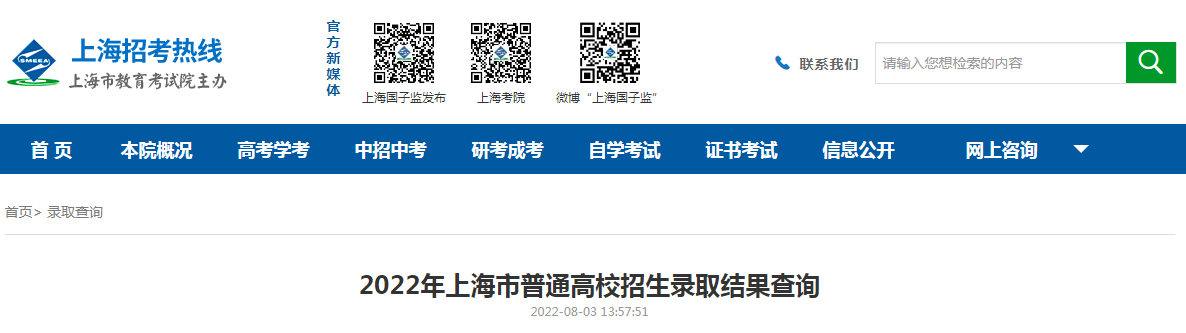 從上海招考熱線了解到,2022年上海市普通高校招生錄取結(jié)果查詢?nèi)肟谝压?,詳?xì)內(nèi)容如下: