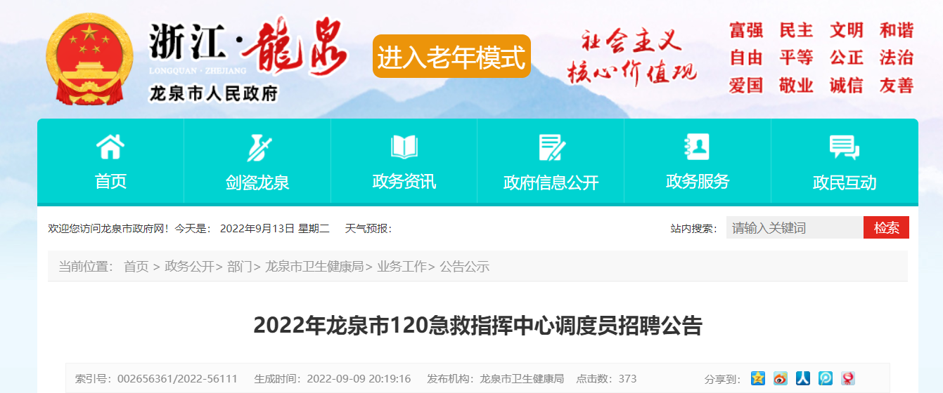 原文標(biāo)題:2022年龍泉市120急救指揮中心調(diào)度員招聘公告