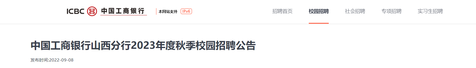 原文標題:中國工商銀行山西分行2023年度秋季校園招聘公告